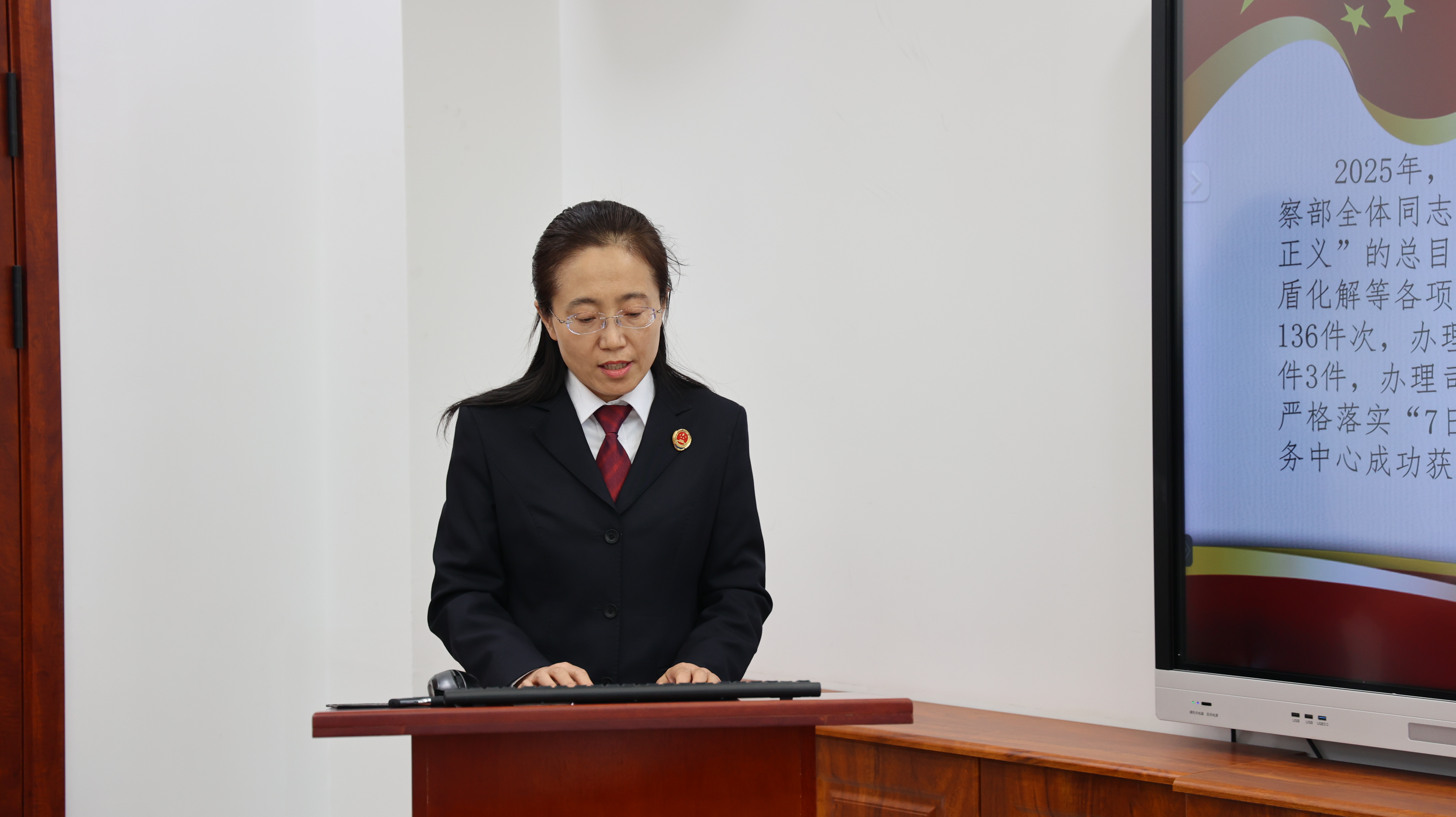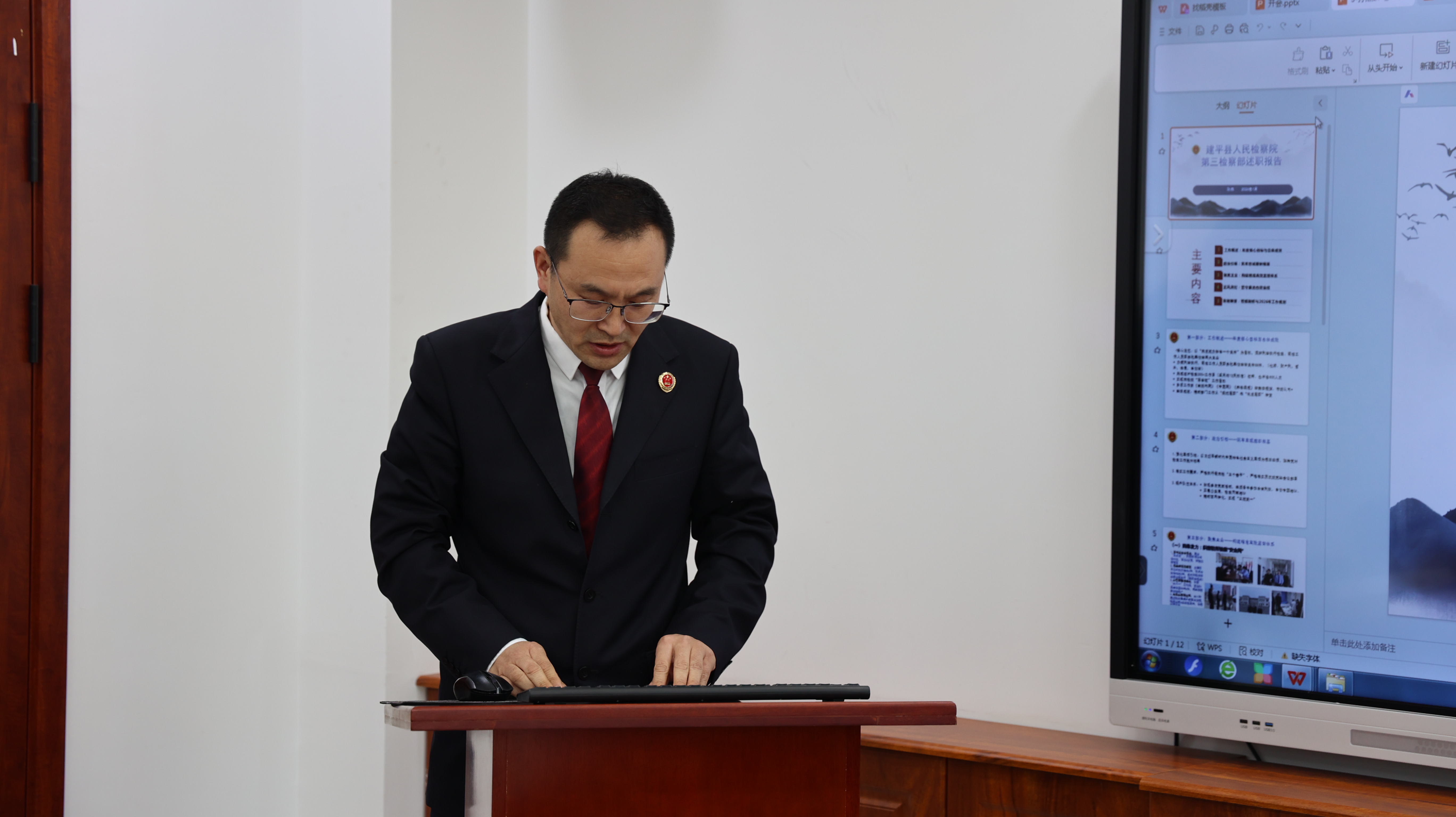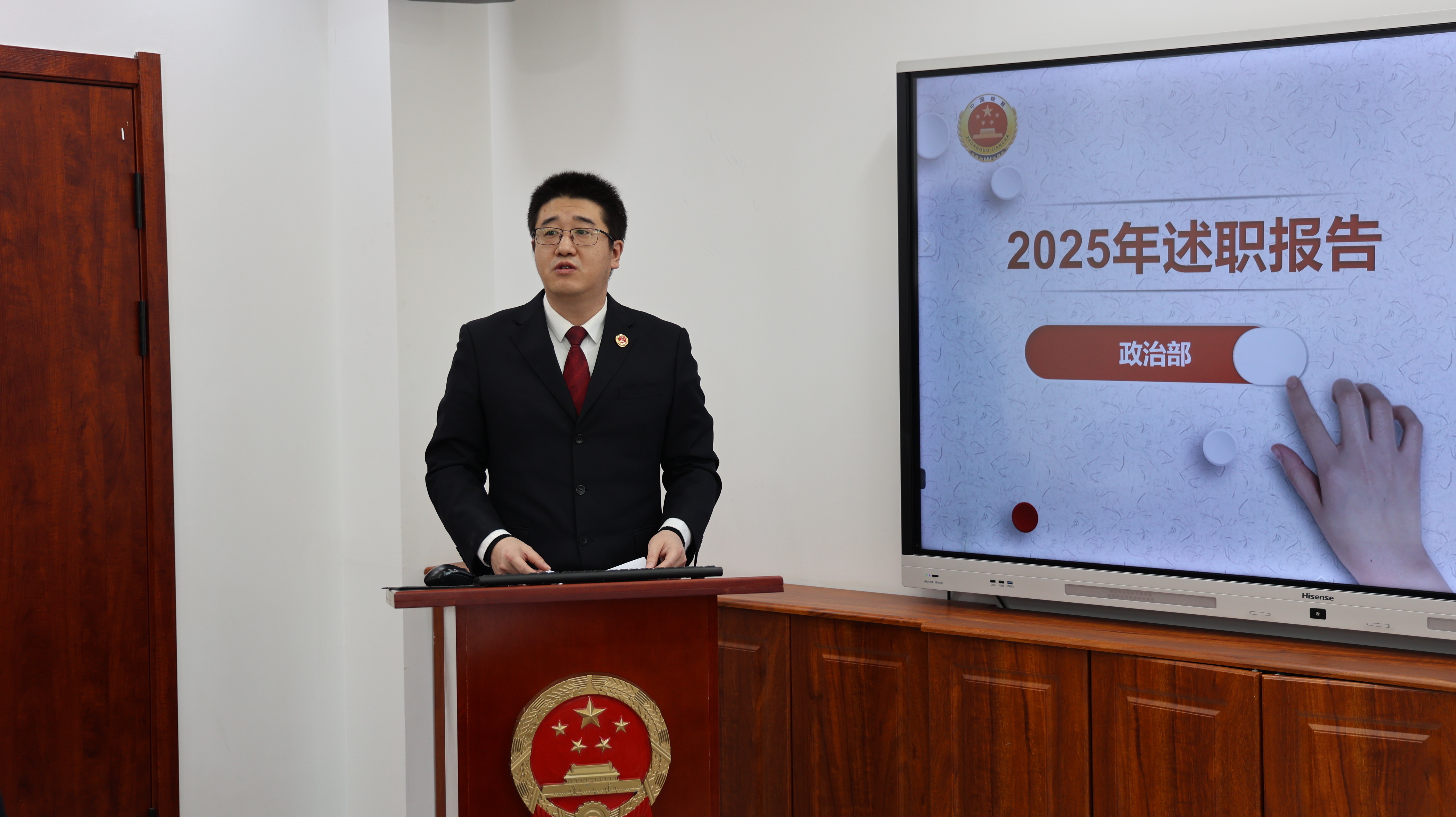 1月14日上午,建平县人民检察院召开2025年度机关党支部书记述职暨部门工作述职评议会,院党组书记、检察长包鹤翔出席,院领导班子成员、检委会专职委员、三级高级检察官及各部门负责人参加。党组成员、政治部主任武吉星主持会议。